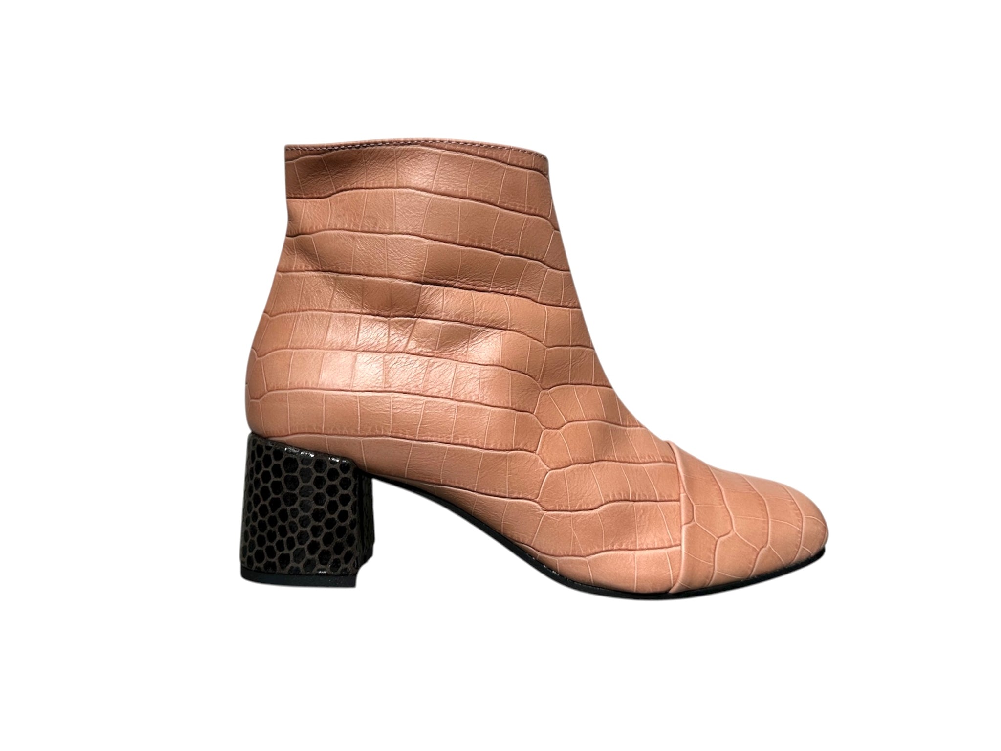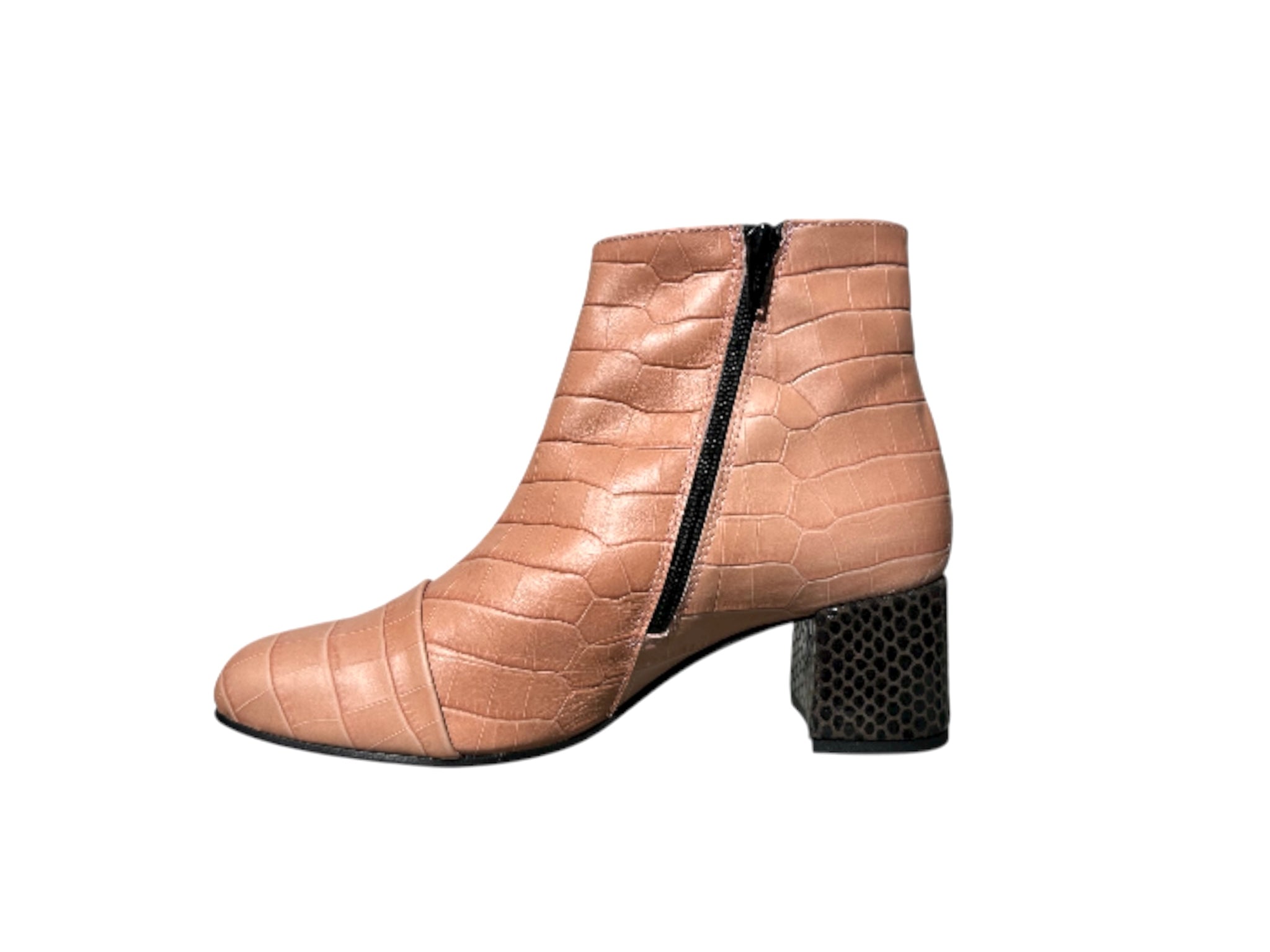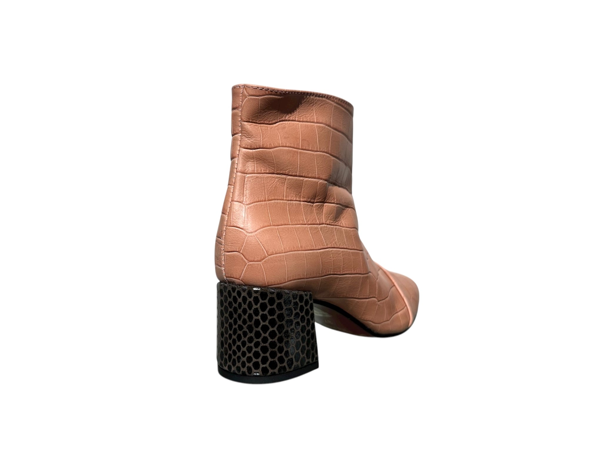 • LA NOSTRA TJQ in pelle rosa, con il tacco Pitonato marrone